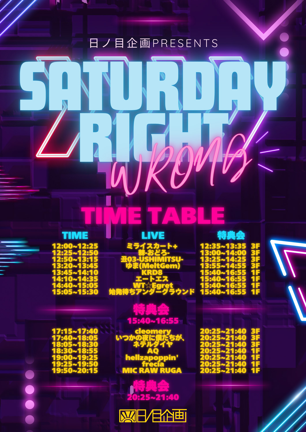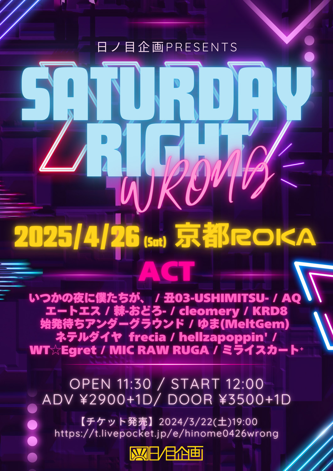 [大阪&京都1日目 夜]日ノ目企画presents”SATURDAYRIGHT/WRONG”