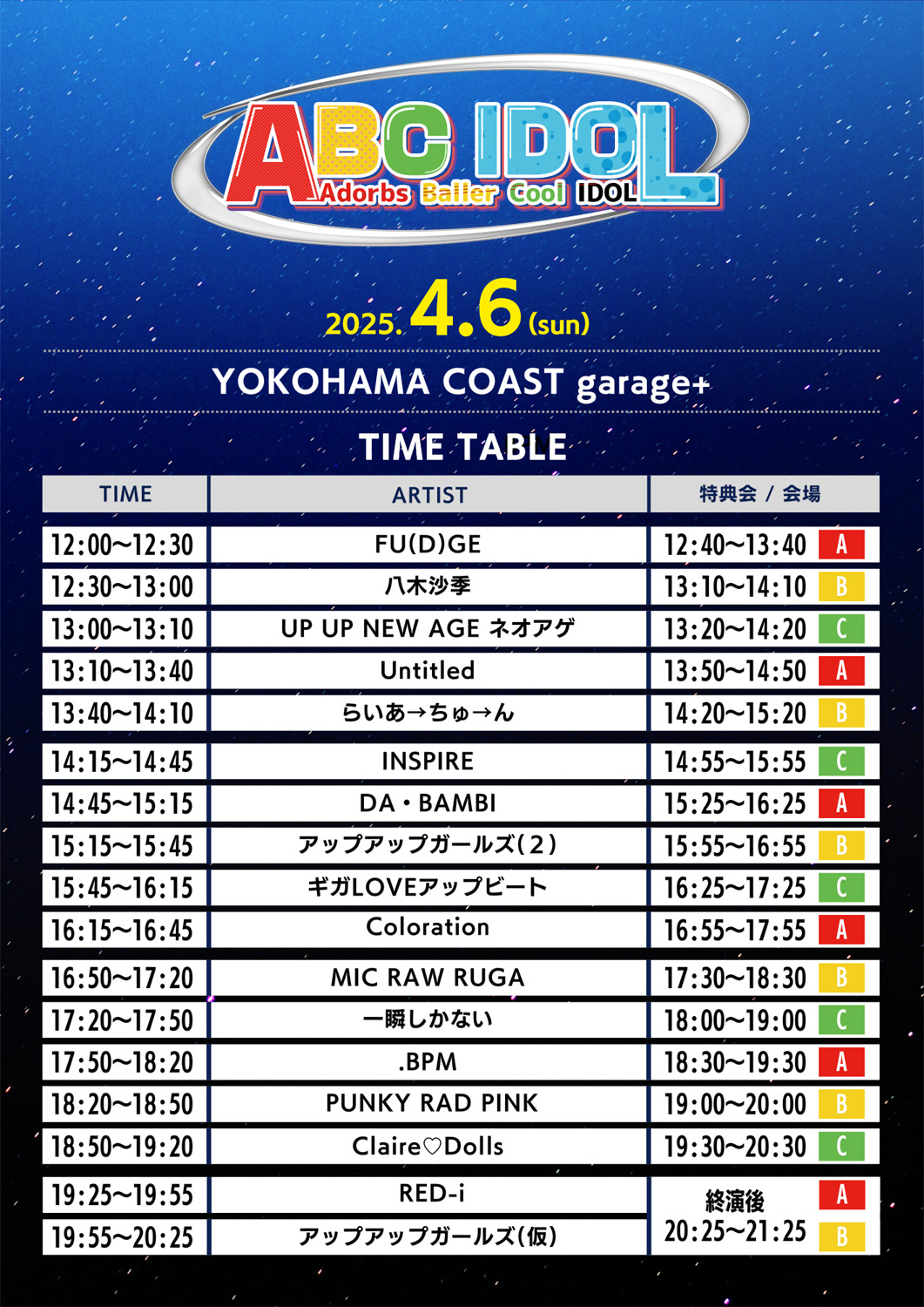 ※出番は16:50~、物販&特典会は並行で17:30~18:30 B。