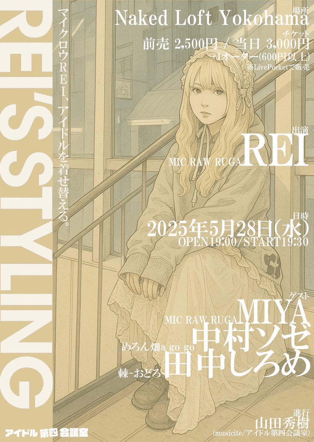 自身が所属するMIC RAW RUGAだけでなく、他のアイドルたちのスタイリングも手がけるREIさんが、3人のアイドルのスタイルを完全プロデュースします!