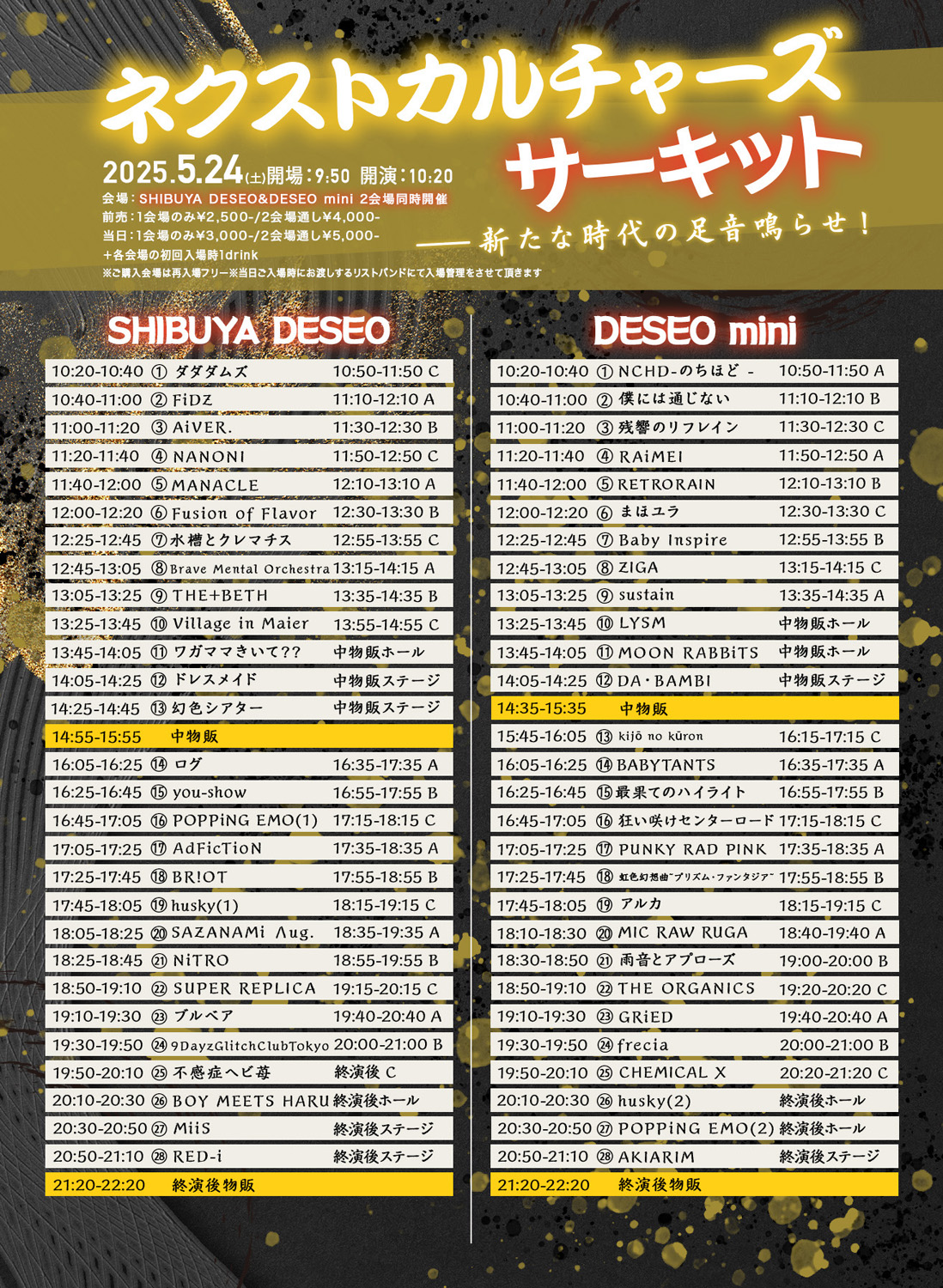 会場:渋谷DESEO(東京都渋谷区道玄坂2-13-5 ハーベストビルディングB1F) / DESEO mini with VILLAGE VANGUARD(東京都渋谷区道玄坂2-13-5 ハーベストビルディング2F) ※2会場サーキットイベント