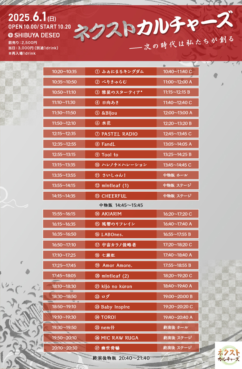 会場:渋谷DESEO(東京都渋谷区道玄坂2-13-5 ハーベストビルディングB1F