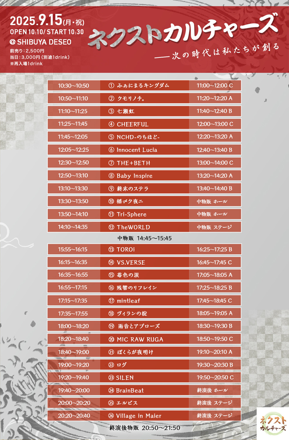タイムテーブルの詳細はこちらの画像をご参照下さい。