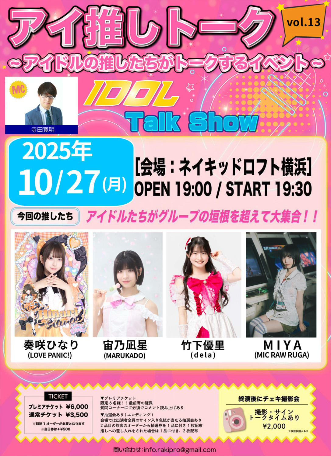 ※チェキ券の販売はイベント主催者のみで行います。事前にご購入頂いたMIC RAW RUGAのチェキ券や写メ券は当日はご使用できません。予めご了承下さいませ。