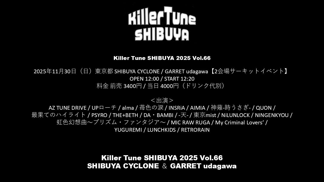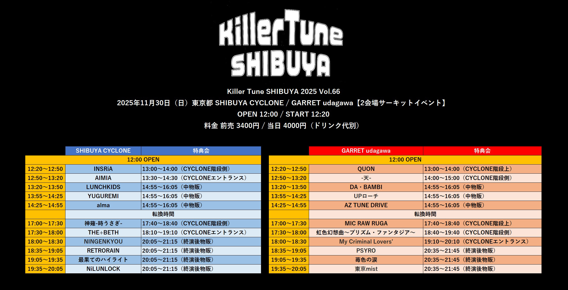 会場:SHIBUYA CYCLONE(東京都渋谷区宇田川町13-16 国際ビルA館B2) / GARRET udagawa(東京都渋谷区宇田川町13-16 国際ビルB館B1) ※2会場サーキットイベント