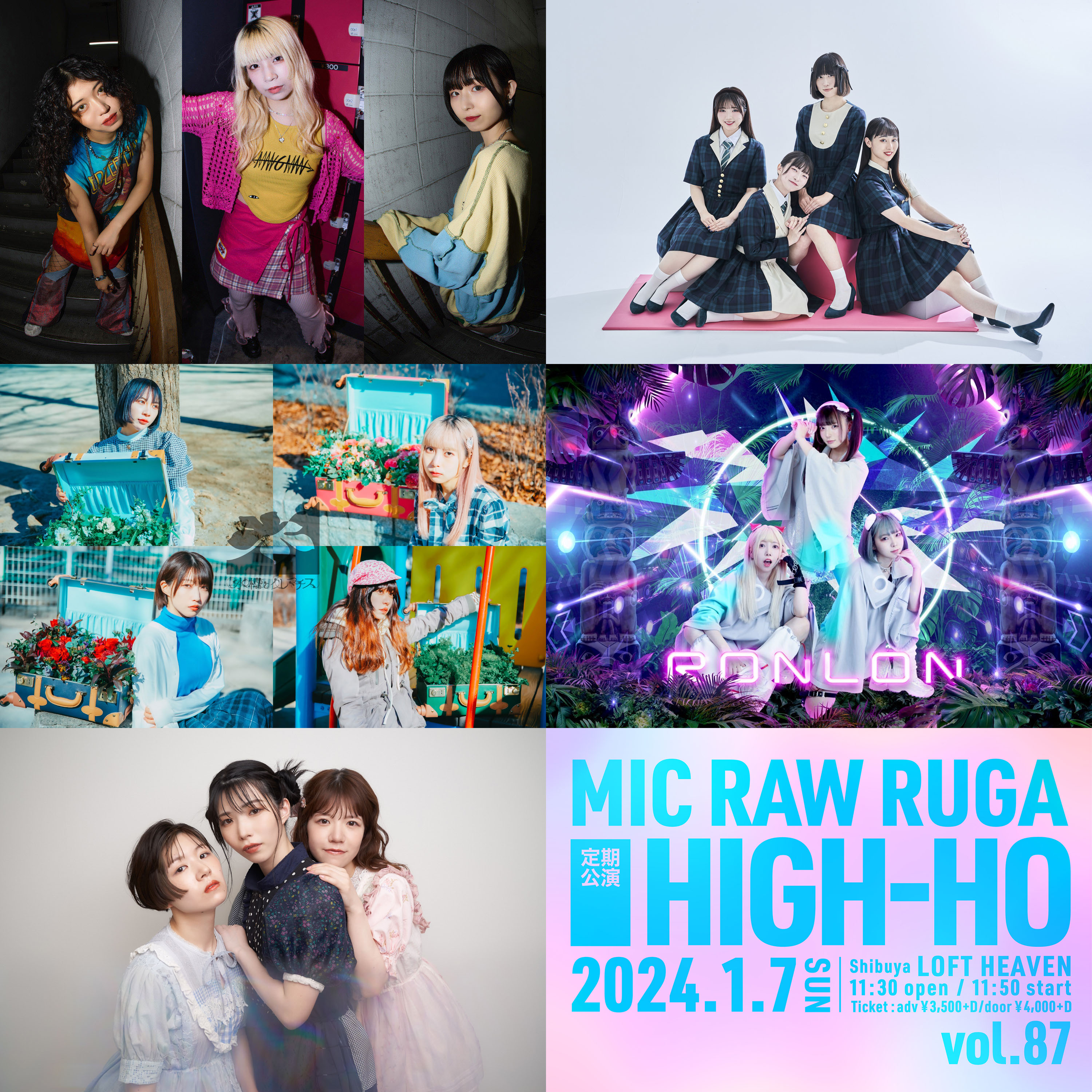 2024年1月7日(日)11:50~、渋谷LOFT HEAVENにて、定期公演「HIGH-HO vol.87」を開催することが決定しました。ゲストは水槽とクレマチスさん、一瞬しかないさん、sommeil sommeilさん、RONLONさんになります。