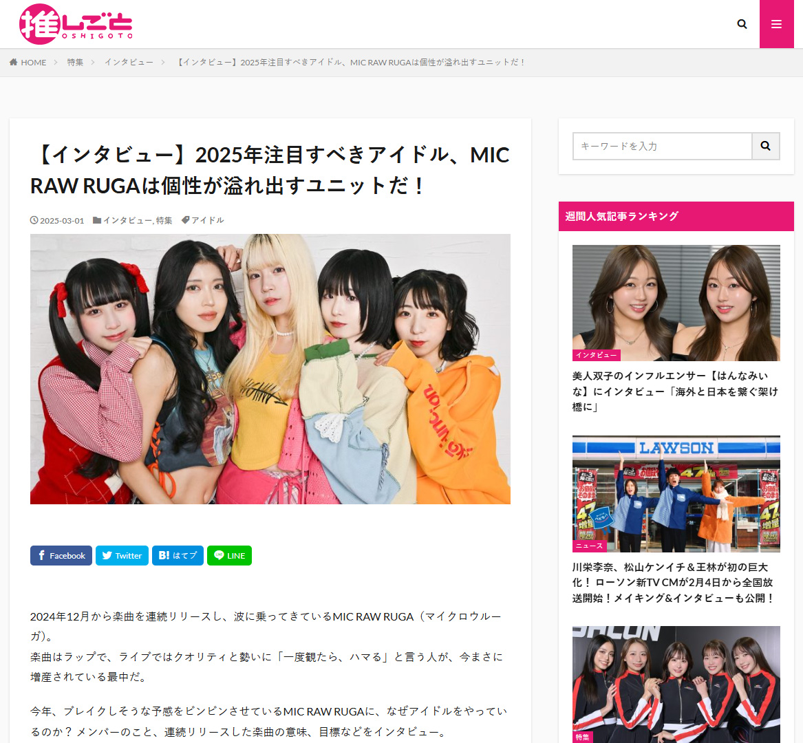 ・【インタビュー】2025年注目すべきアイドル、MIC RAW RUGAは個性が溢れ出すユニットだ!│推しごと