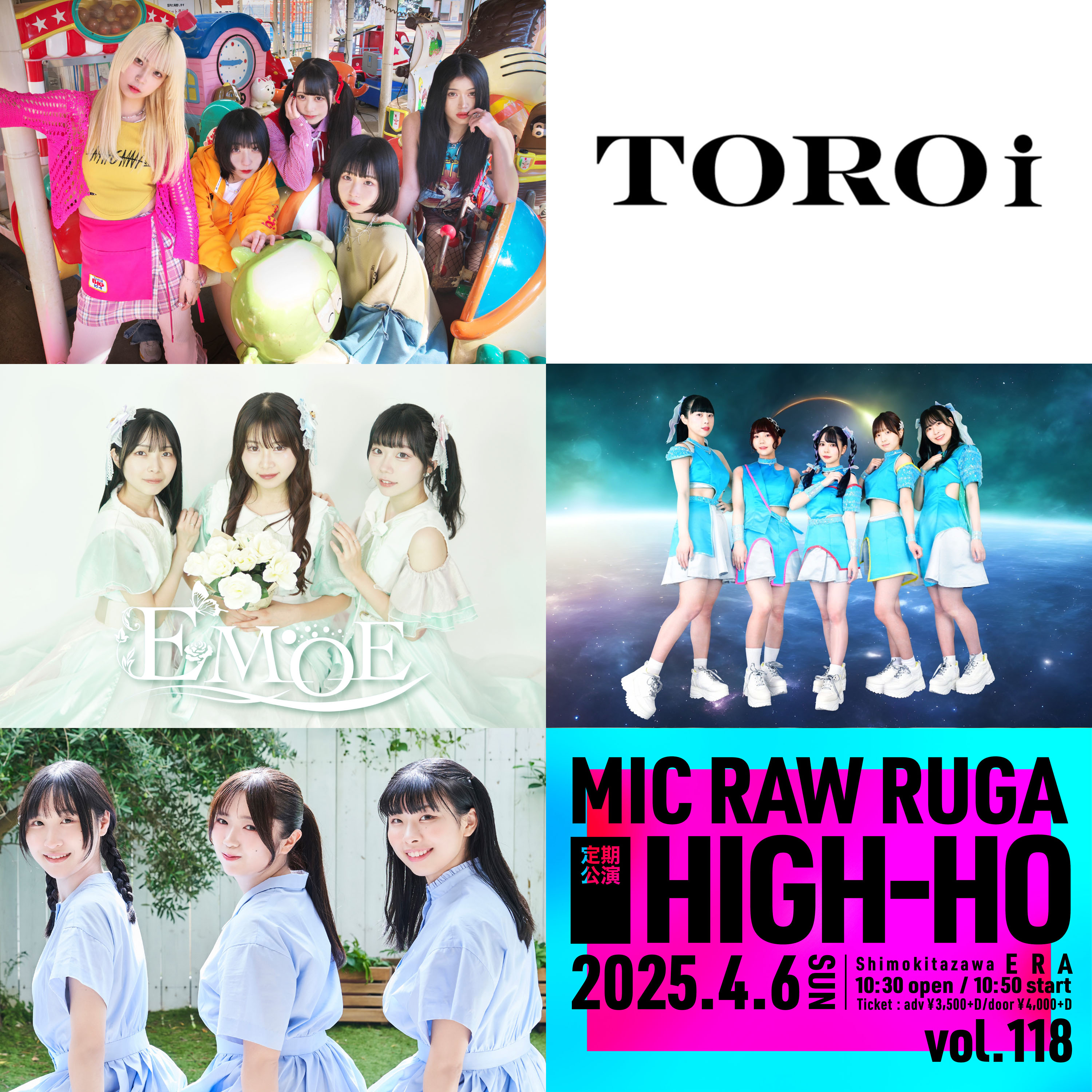 2025年4月6日(日)10:50~、下北沢ERAにて、定期公演「HIGH-HO vol.118」を開催することが決定しました。ゲストはTOROiさん、SUMMER ROCKETさん、EMOEさん、一瞬しかないさんとなります。